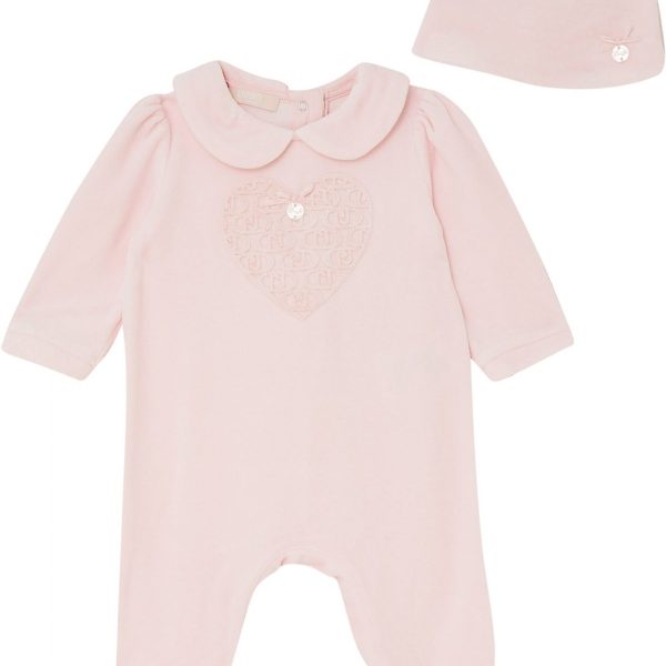 Abitino in maglia rosa e bianco con fantasia logata