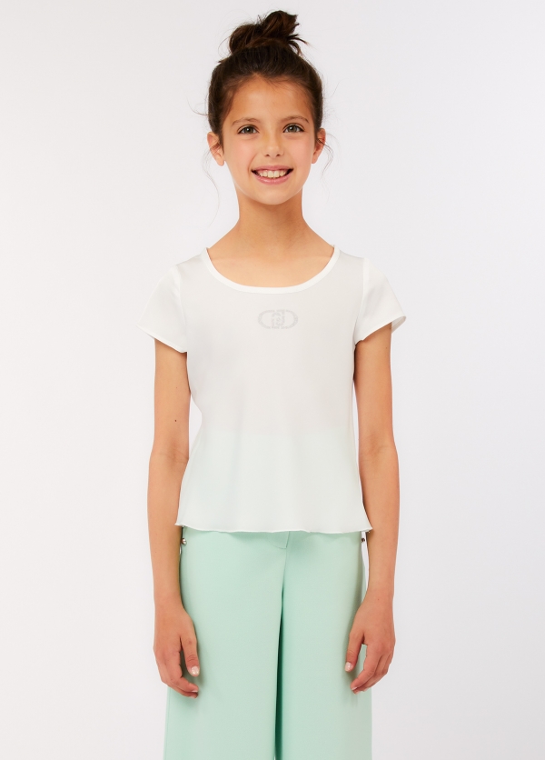 Blusa effetto raso con logo mini borchie colore bianco Liu-jo