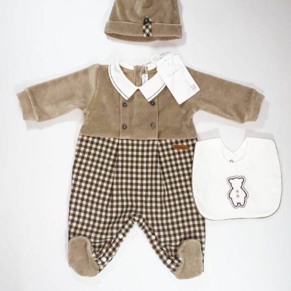 Cappellino caldo cotone da abbinare alla tutina Beige quadri Barcellino.