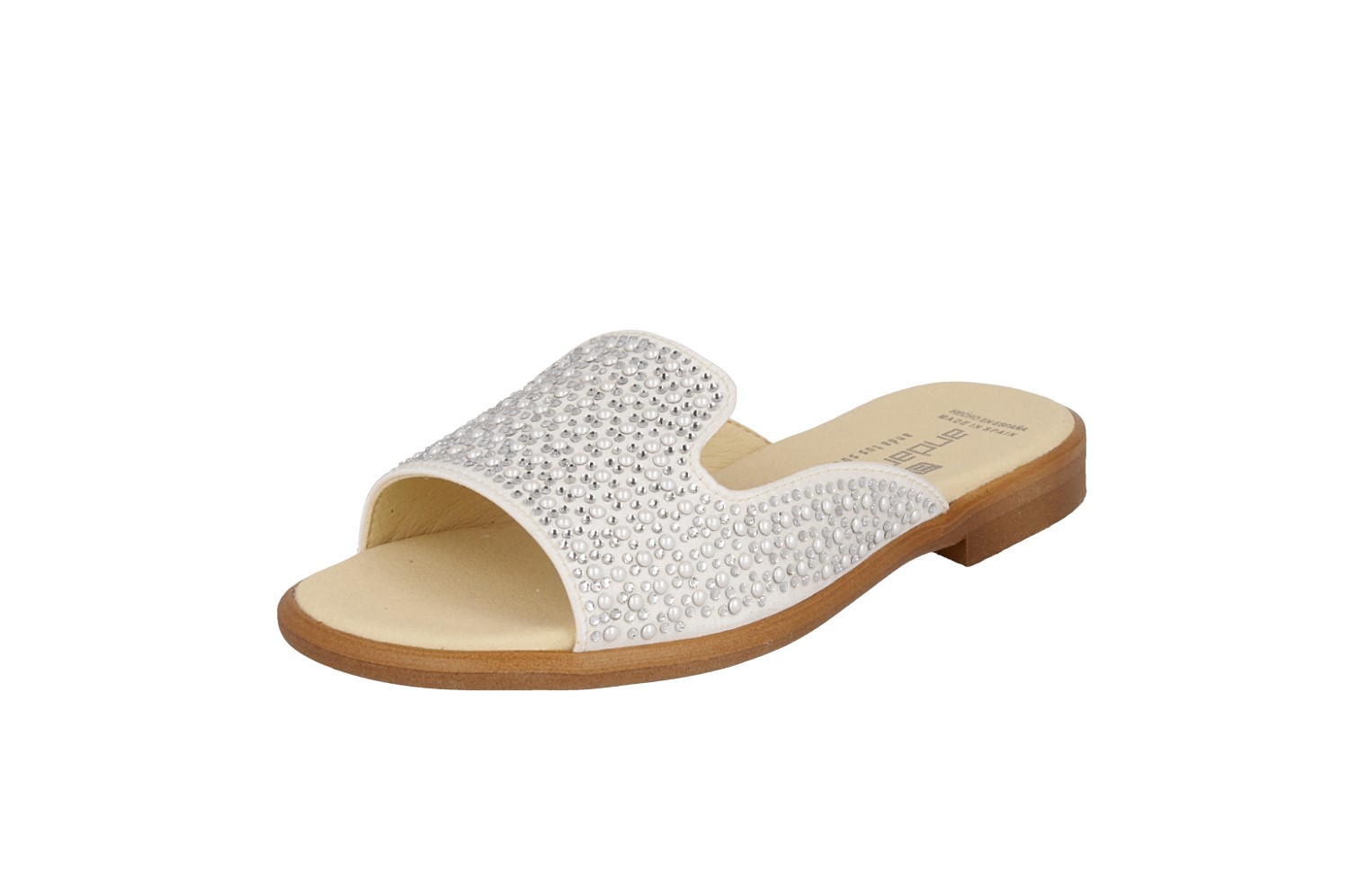 Ciabatta colore bianco impreziosita da punti luce e perle, raffinata e unica