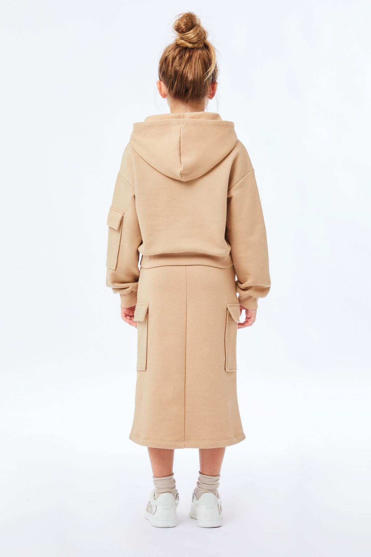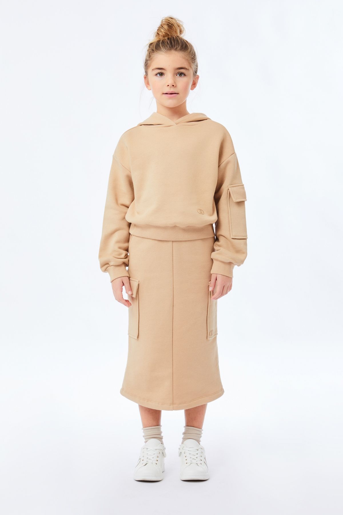 Completo coordinato felpa e gonna cargo colore camel