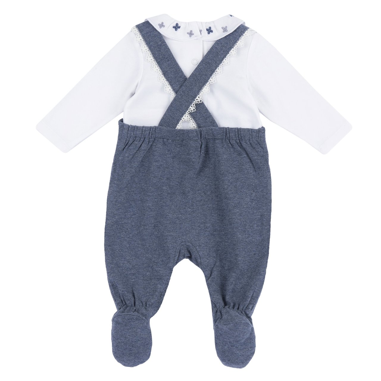 • Applicazione in organza su salopette e nastro decorativo sulle bretelle