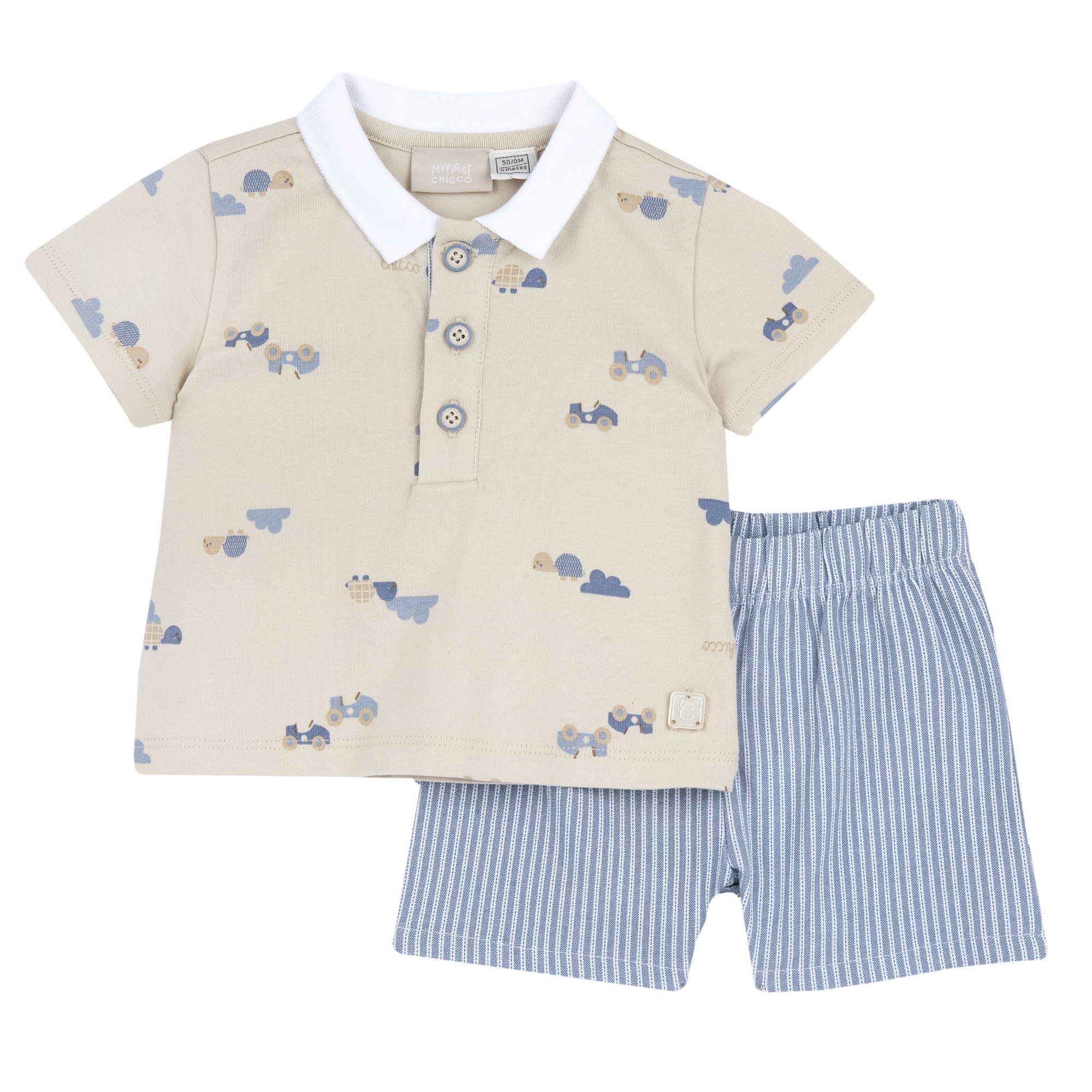 - Stampa fantasia per la maglietta e stampa righe per pantaloni corti