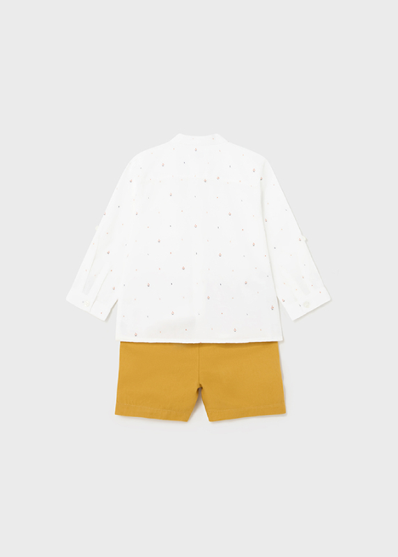 Completo 2 pz camicia manica lunga collo coreana e bermuda giallo.