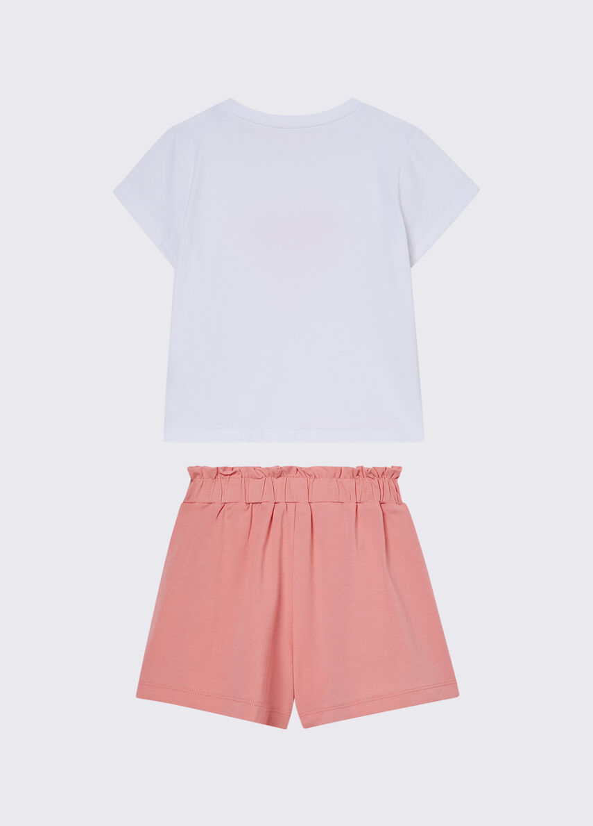Completo t-shirt bianca e pantaloncino di cotone rosa Liu-Jo