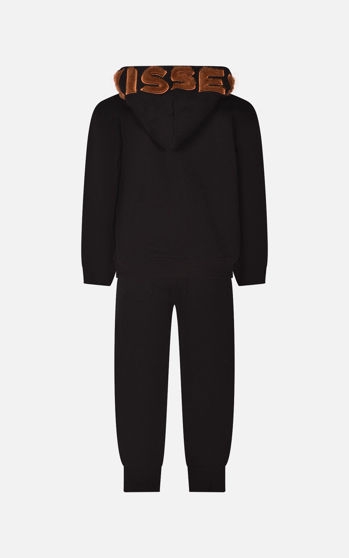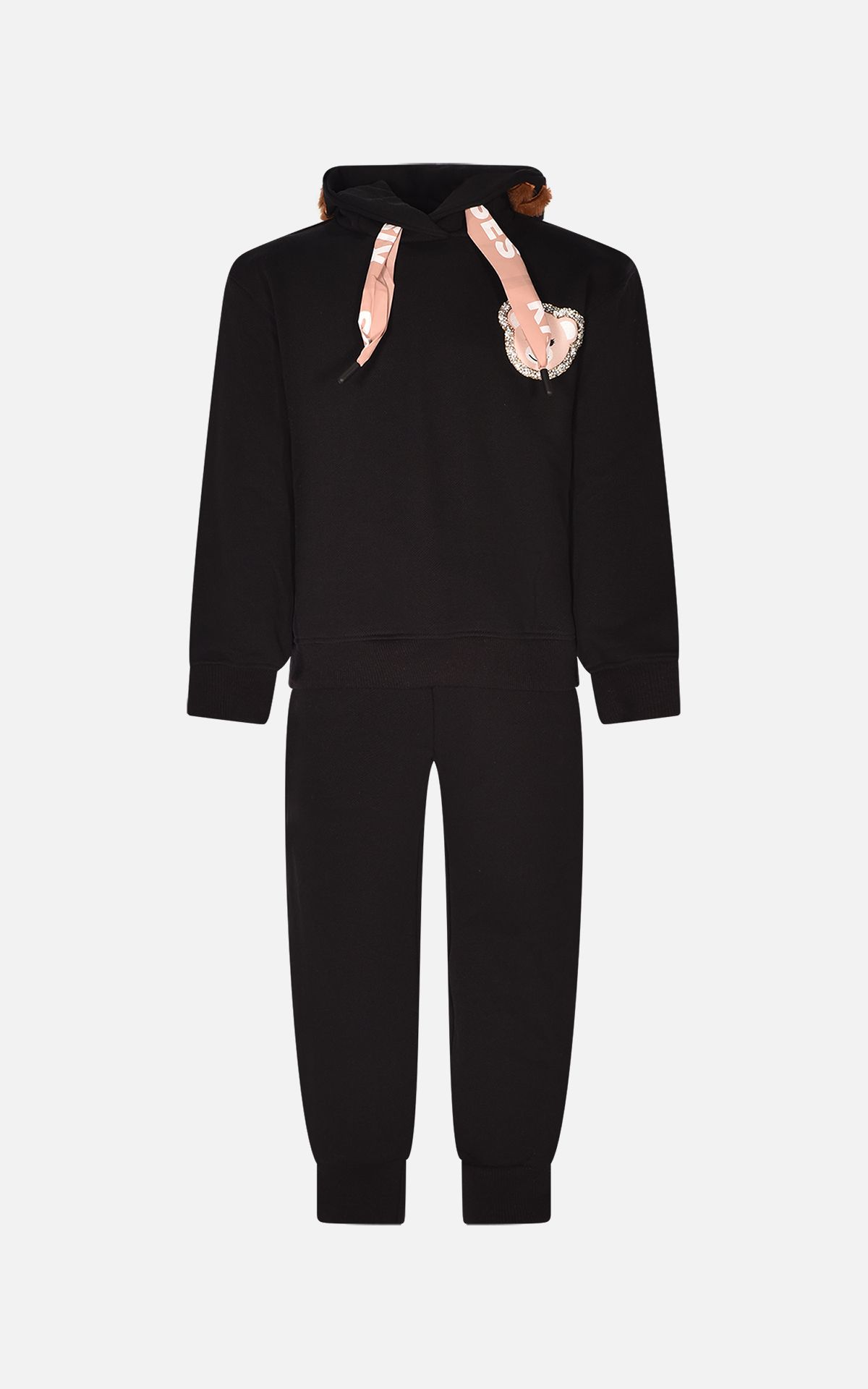 Completo due pezzi. -Felpa con cappuccio e maniche lunghe. Finiture a costa. Dettaglio stampa logo sul petto. Tasche frontali a marsupio. -Pantaloni in felpa con vita elasticizzata. Tasche anteriori e dettaglio stampa logo.