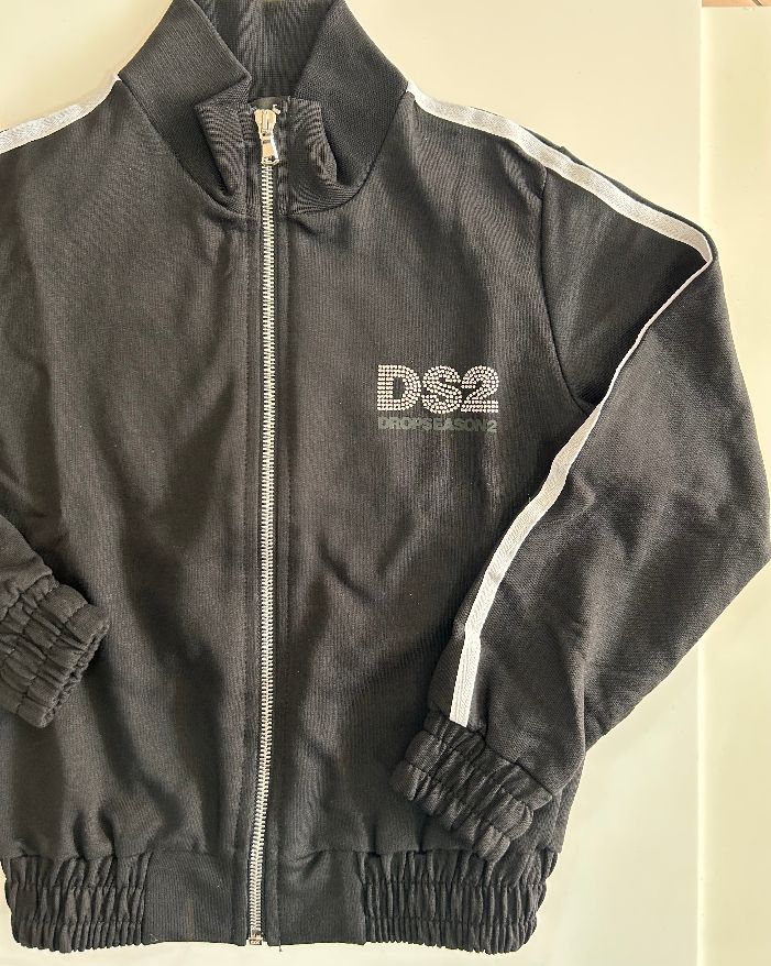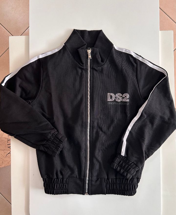Felpa nera Ds2 con cerniera e logo di strass