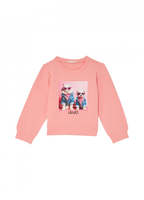 Felpa in cotone colore rosa corallo Liu-Jo con stampa cagnolini
