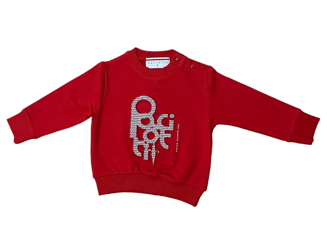 Felpa primaverile bambino con stampa logo a rilievo Paciotti. Design unico e innovativo per un look alla moda.