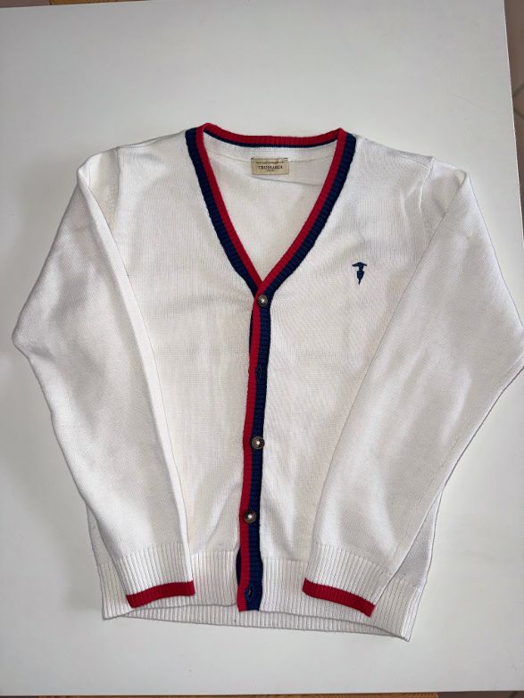 Cardigan con bottoni colore bianco, blu e rosso con logoTrussardi