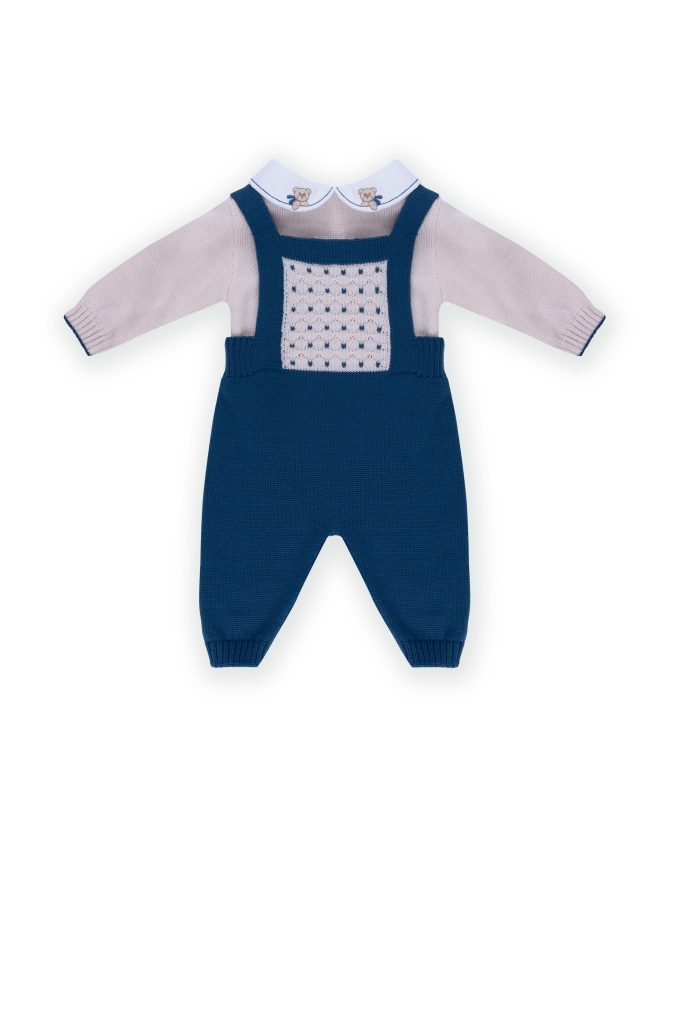 Maglione blu in cotone con dettagli rossi con logo ricamato e bottoni sulla spalla. Eleganza e comfort per i più piccoli