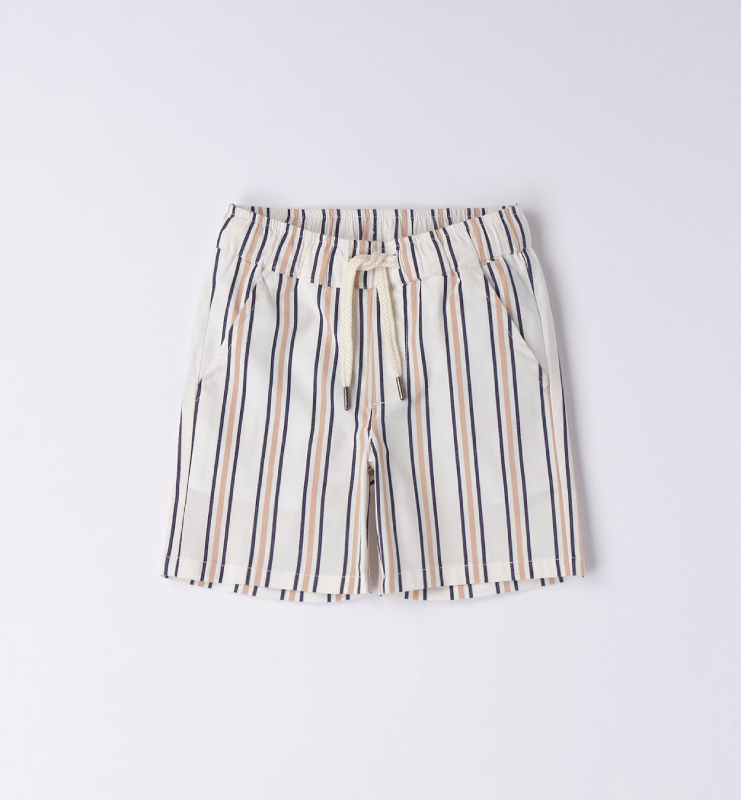 Pantaloncini corti bambino Sarabanda realizzati in popeline stretch di cotone. Il modello presenta lunghezza fino al ginocchio. Il pantalone ha elastico in vita con coulisse. Fantasia rigata. L'articolo fa parte della collezione S Premium Sarabanda ideata per vestire le cerimonie più formali dei bambini