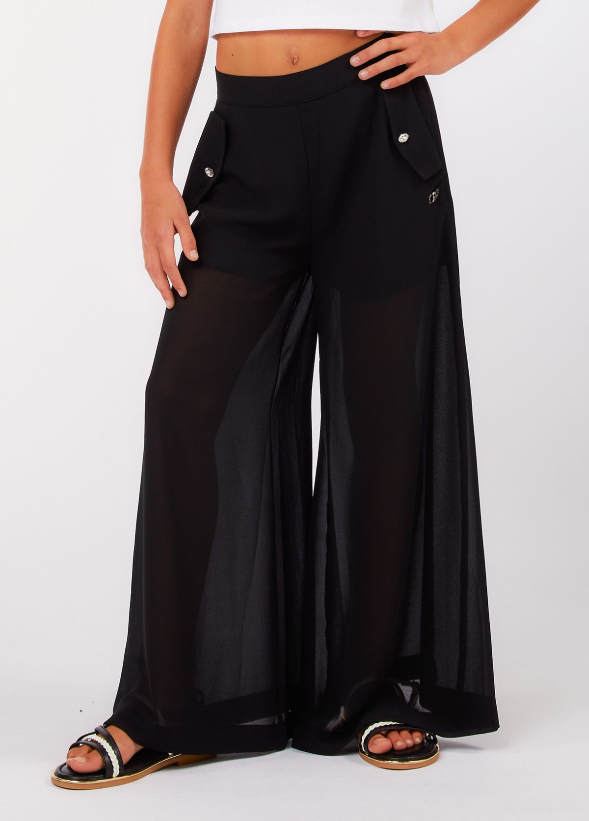 Pantalone lungo con volant trasparenza