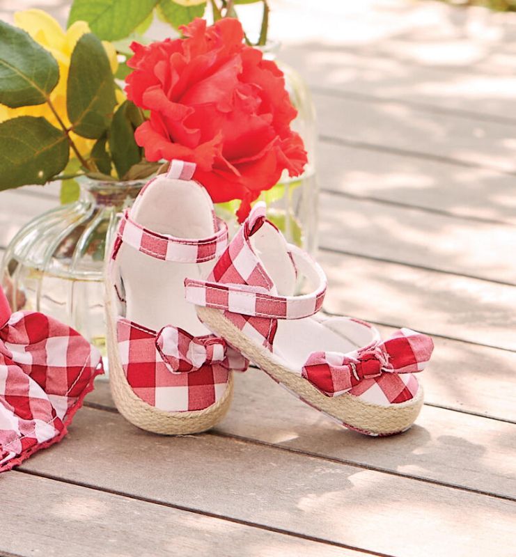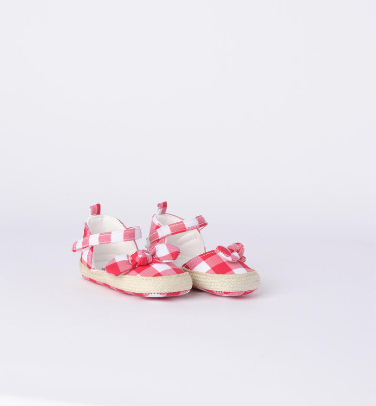 Scarpe in vichy per bimba Minibanda. Il modello ha la chiusura regolabile in velcro, interno in jersey di cotone. Fantasia check