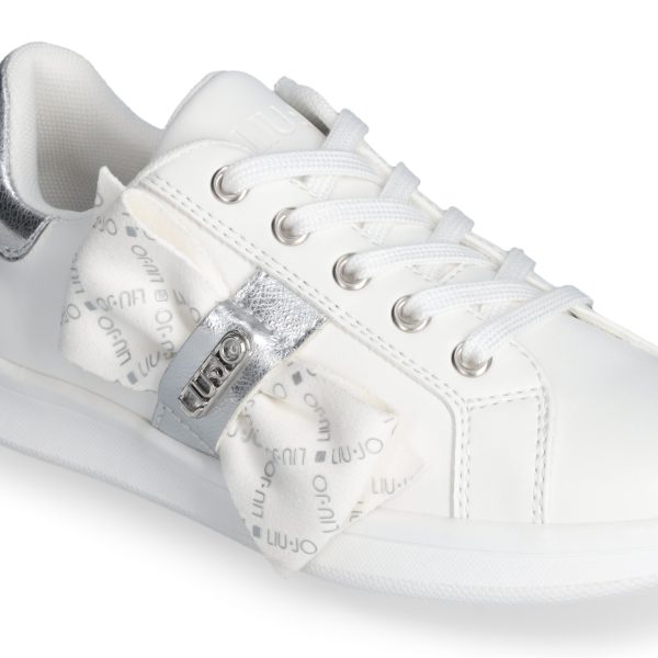 Scarpe sneaker bianche e argento con particolare fiocco scritta logo Liu-Jo e cerniera laterale