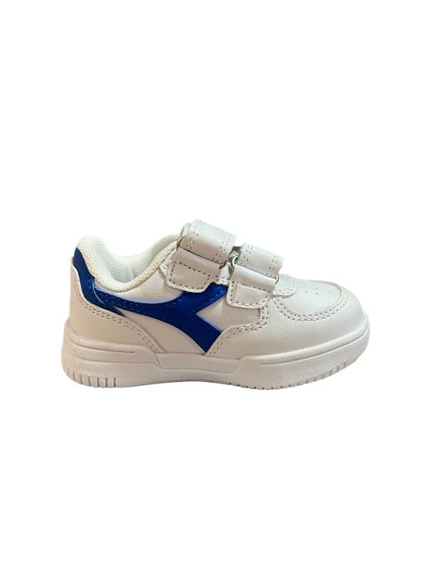 Sneakers per bimbi e bimbe in pelle sintetica con chiusura a zip. Il modello Raptor Low TD, come il corrispetivo da adulto, si arrichisce del fregio a contrasto e il collarino in tessuto.