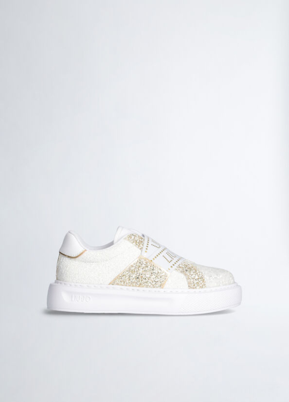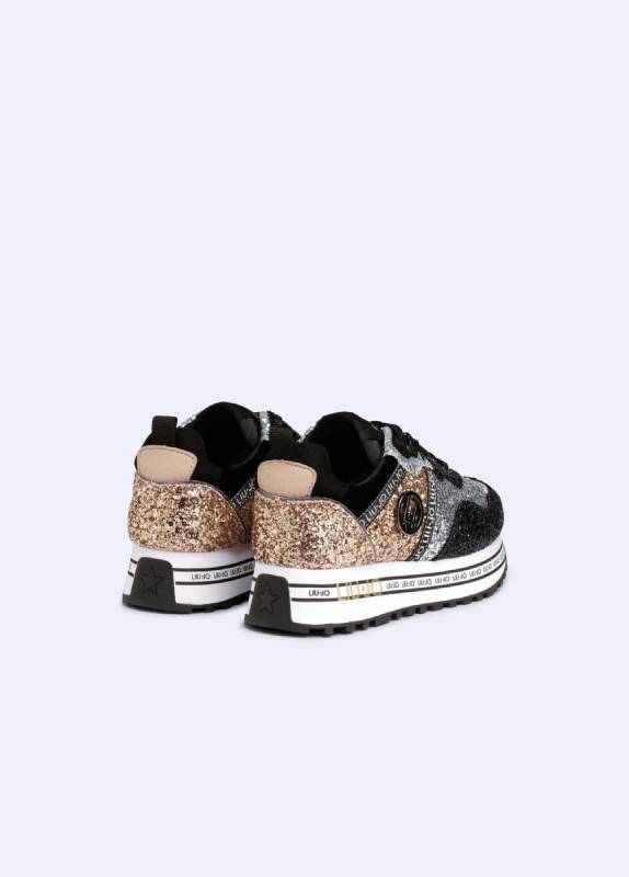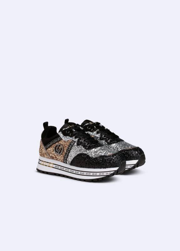 Sneakers platform con glitter multicolor Logo metallico LJ applicato sul lato Nastri con logo jacquard Loop in gross grain Lacci piatti con interventi in lurex® Suola platform con dettagli logo all over Battistrada dentellato Altezza suola: 3,2cm