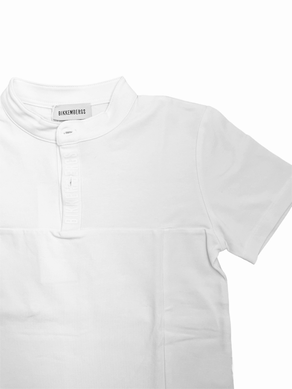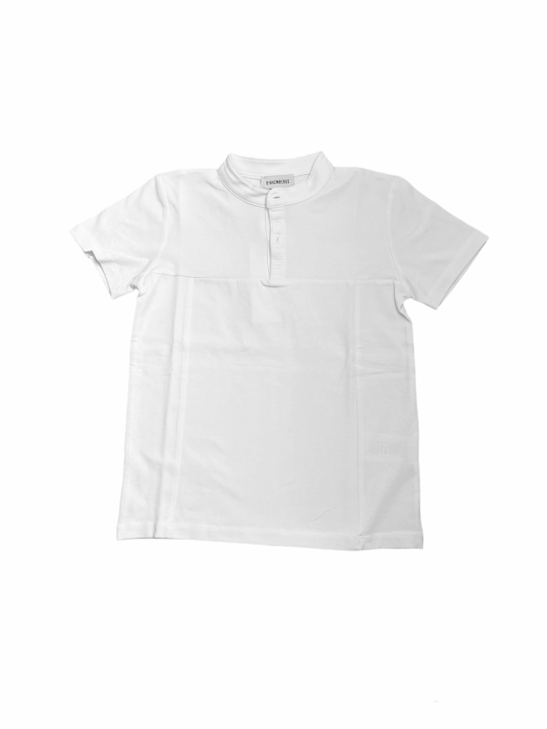 T-shirt da ragazzo un motivo optical fresco e dinamico. La maglietta, realizzata in cotone, presenta maniche corte e collo alla coreana.