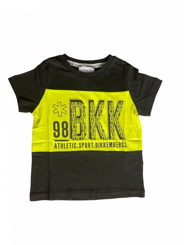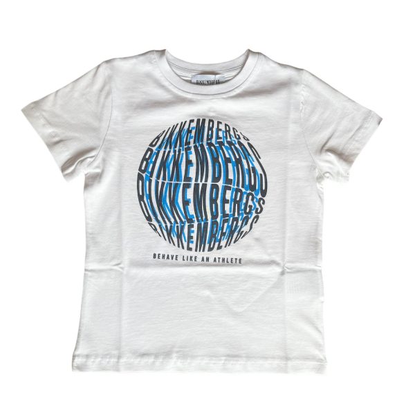L'outline dell'iconico giocatore di calcio Bikkembergs crea sulla T-shirt da ragazzo un motivo optical fresco e dinamico. La maglietta, realizzata in cotone, presenta maniche corte.