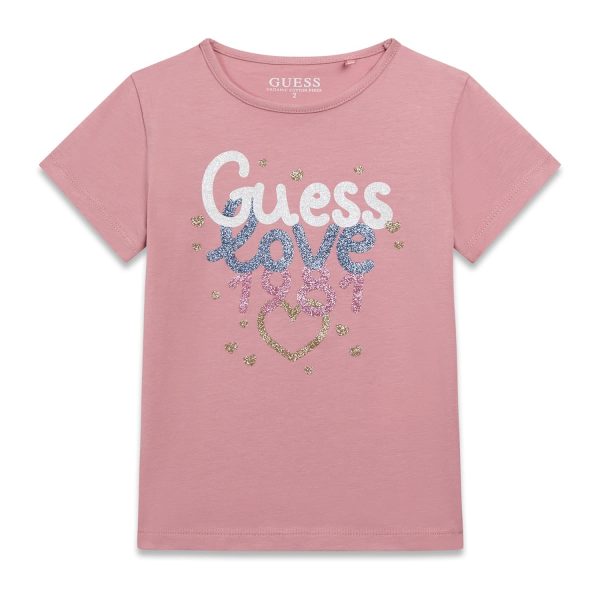 T-shirt rosa con scritta Guess
