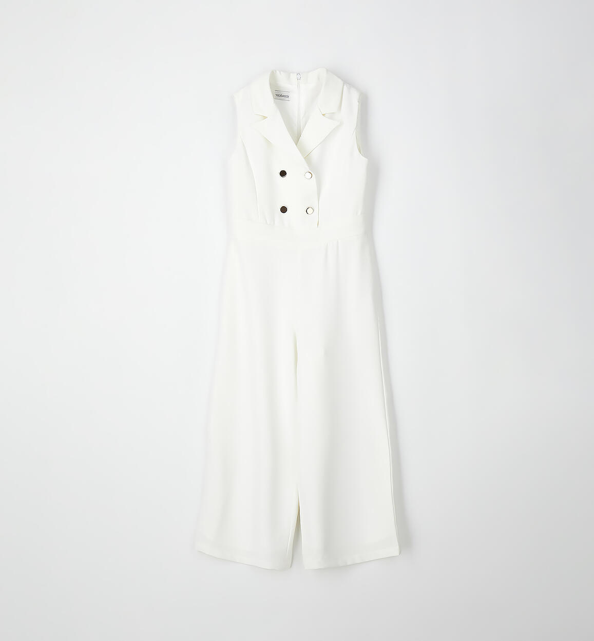 Tuta elegante per ragazza Sarabanda realizzata in tessuto crêpe con apertura dietro tramite zip invisibile. Fodera in satin e apertura doppiopetto davanti con bottoni