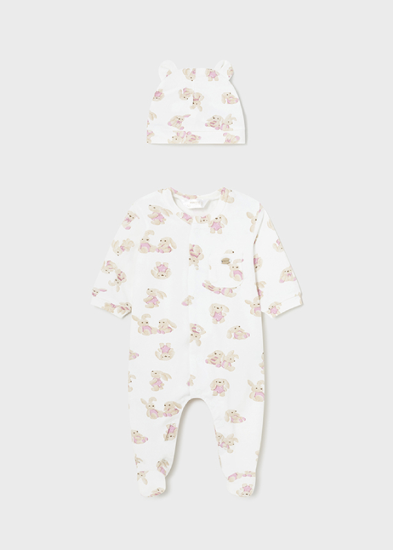 Tutina Rosa Baby con coniglietti Mayoral. Con Cappellino. Cotone