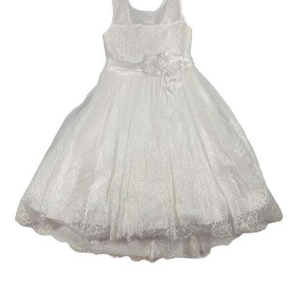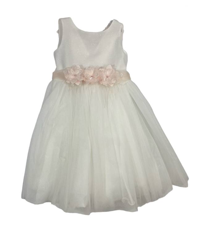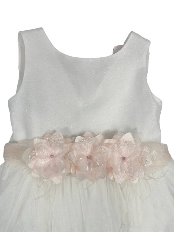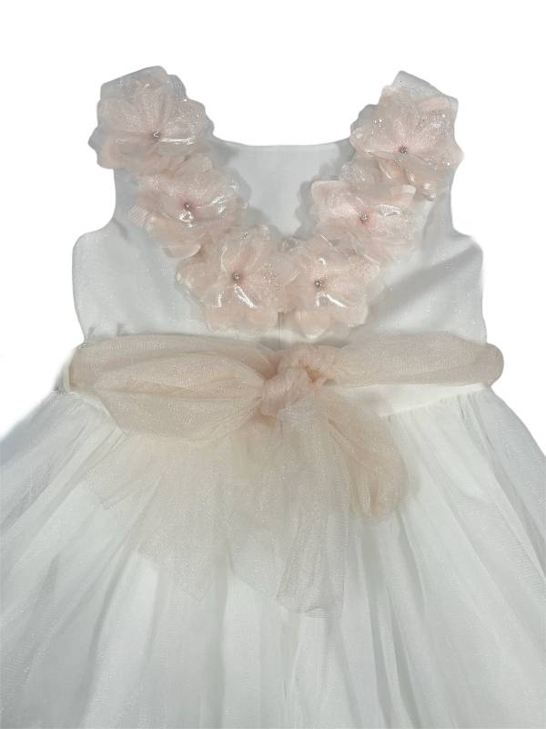 Vestito da cerimonia Bianco con inserti e dettagli rosa.
